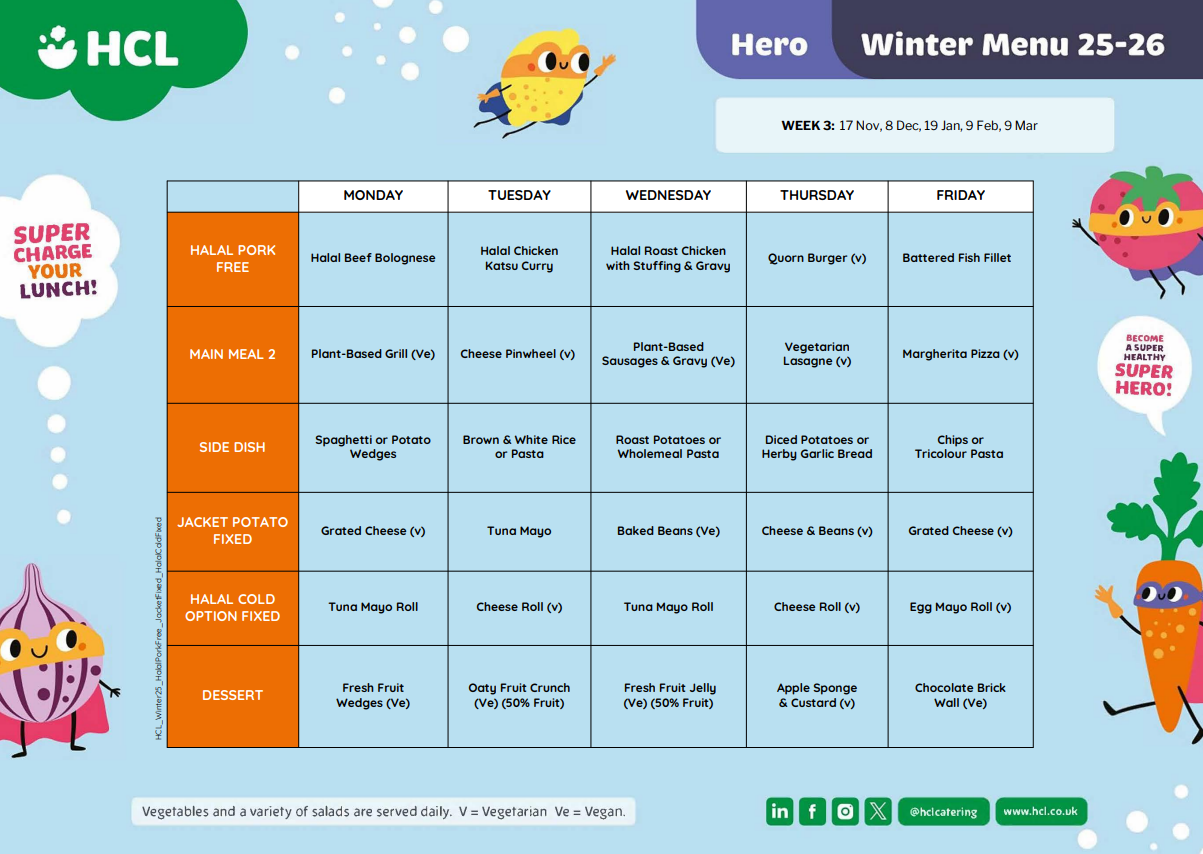 Your child can have a lunch provided by the school or bring in a packed lunch. All school lunches are free. If you would like your child to change from a school lunch to a packed lunch or vice versa then this can only be done at the beginning of the half term. You must notify the school office of this change.